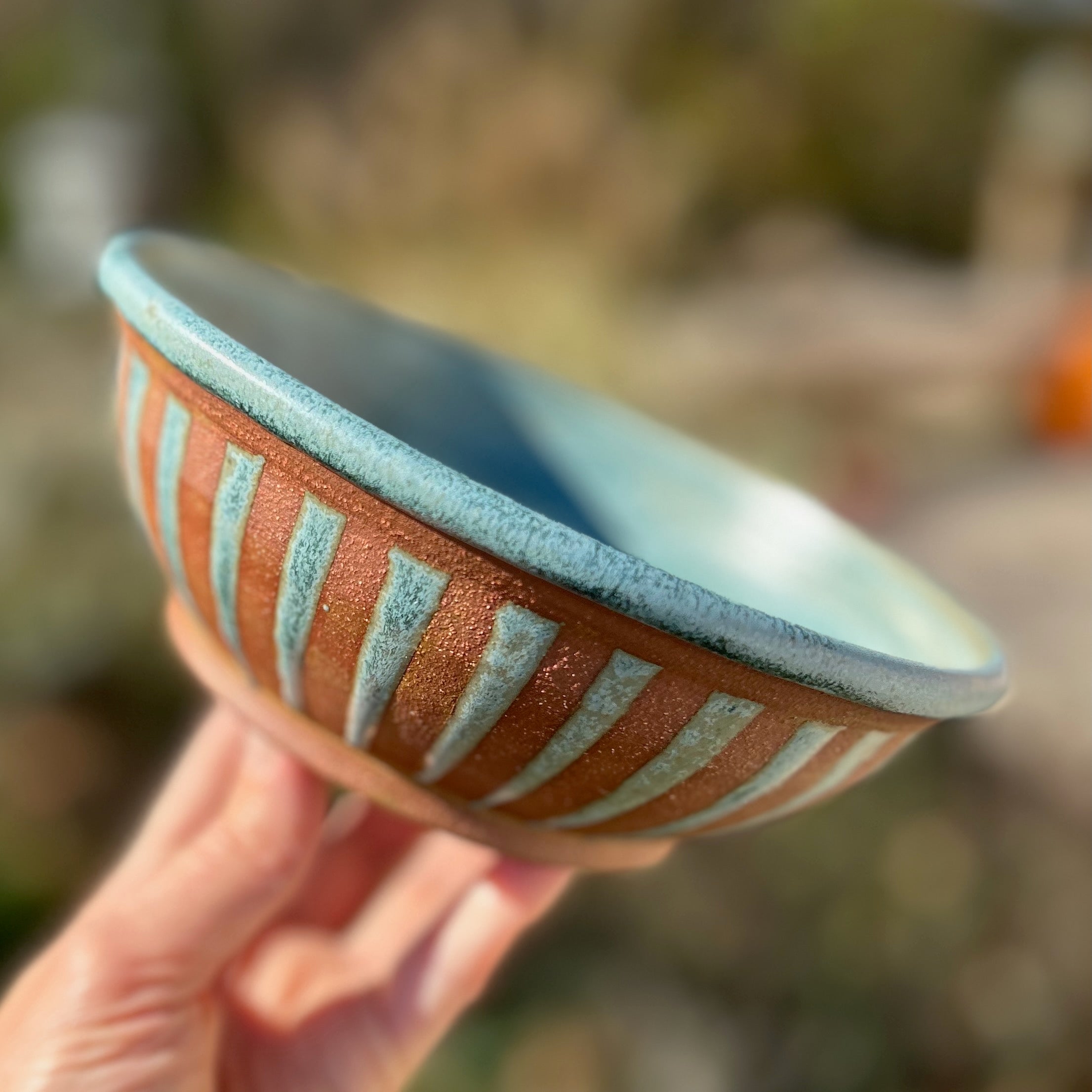 Funky Stripes Ramen Bowl in Blue: for Soups, Stews, Entree Salads, Serving Sides